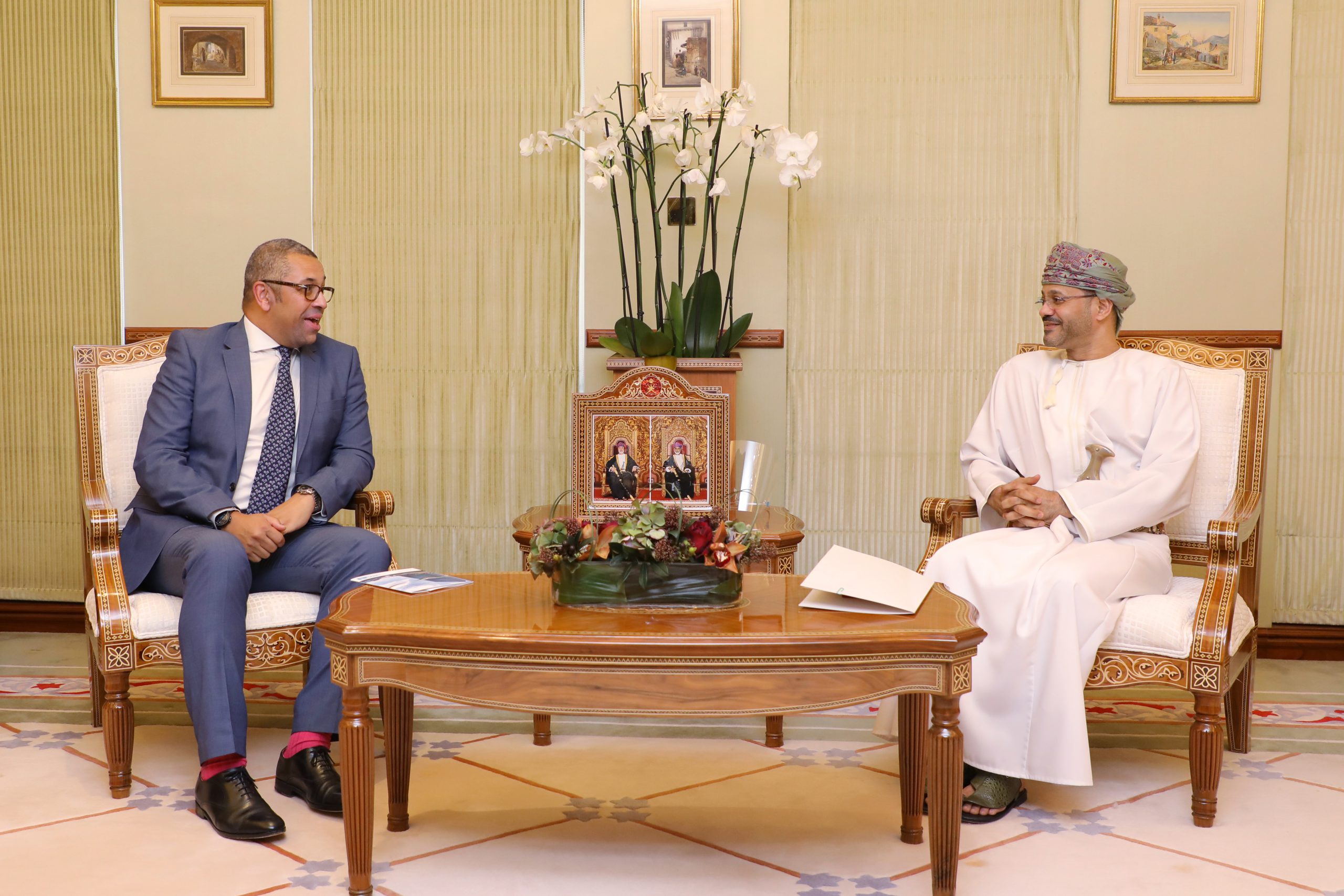 معالي السيد بدر بن حمد بن حمود البوسعيدي وزير الخارجية يستقبل معالي جيمس كليفرلي وزير الدولة بوزارة الخارجية البريطانية لشؤون الشرق الأوسط وشمال إفريقيا