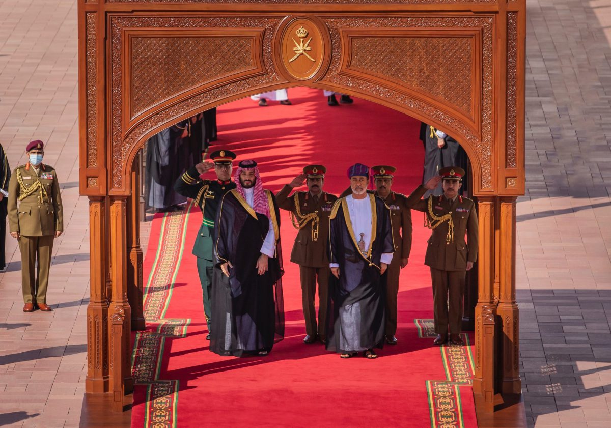 أُجريت لصاحبِ السُّمو الملكي الأمير محمد بن سلمان آل سعود وليّ العهد نائب رئيس مجلس الوزراء وزير الدفاع بالمملكة العربية السعودية الشقيقة ظهر اليوم مراسم الاستقبال الرسمية بمناسبة زيارة سموّه إلى سلطنة عُمان.