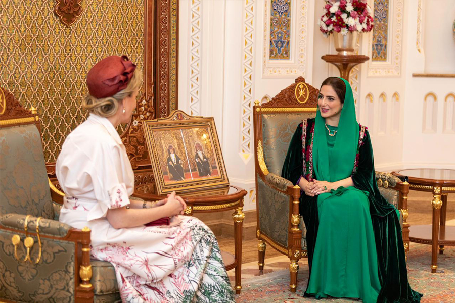 استقبلت السيدة الجليلةُ حرمُ جلالة السلطان المعظم – حفظها الله ورعاها- بقصر العلم العامر اليوم جلالة الملكة ماتيلد ماري كريستين غيسلاين ملكة البلجيكيين في إطار زيارتها لسلطنة عمان.