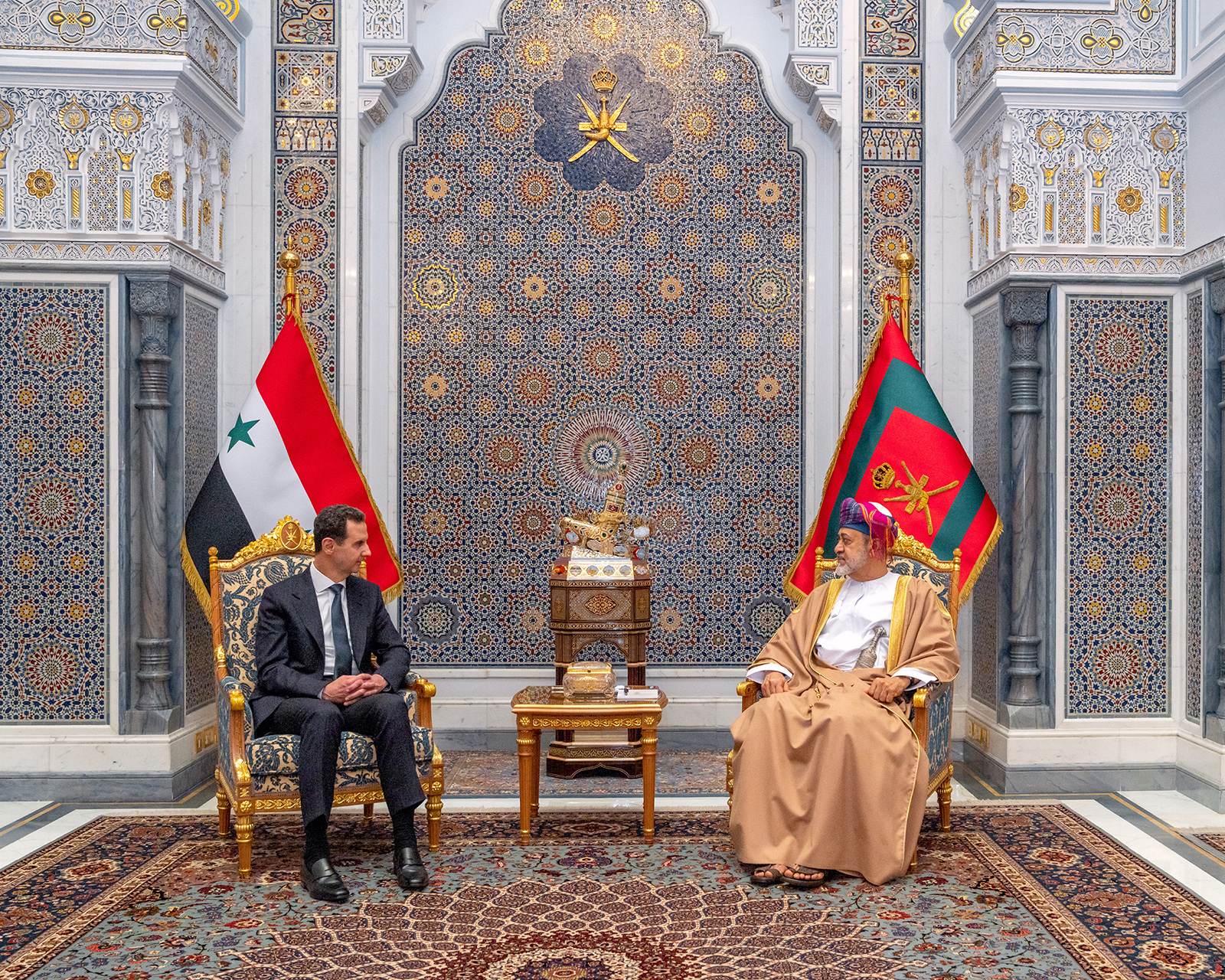 استقبل حضرةُ صاحبِ الجلالةِ السُّلطان هيثم بن طارق المعظم /حفظهُ اللهُ ورعاهُ/ فخامةَ الرئيس الدكتور بشّار الأسد رئيسَ الجمهوريّة العربيّة السُّورية الذي قام بزيارة عمل إلى سلطنة عُمان.