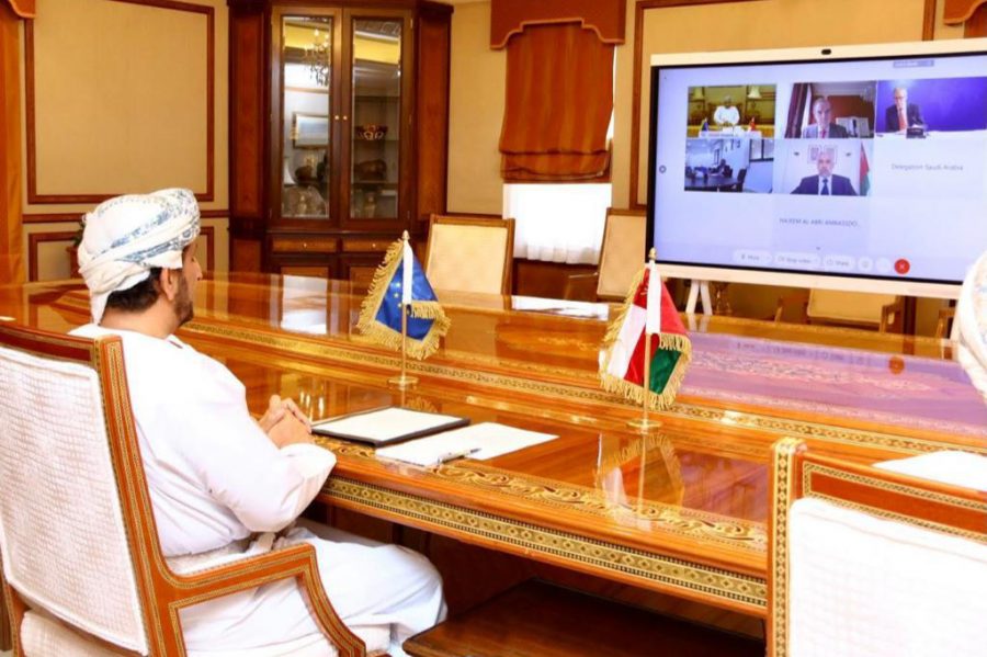 عقدت اليوم جلسة المشاورات السياسية الثانية بين وزارة الخارجية وهيئة العمل الخارجي بالإتحاد الأوروبي عبر الإتصال المرئي، ترأس الجانب العماني سعادة الشيخ خليفة بن علي بن عيسى الحارثي، وكيل وزارة الخارجية للشؤون الدبلوماسية، ومن الجانب الأوروبي سعادة أنريكي مورا، نائب أمين عام هيئة العمل الخارجي بالإتحاد الأوروبي.