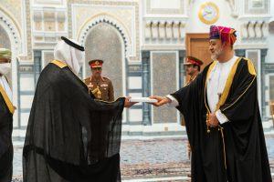 تقبل حضرة صاحب الجلالة السلطان هيثم بن طارق المعظم ـ حفظه الله ورعاه ـ بقصر البركة العامر صباح اليوم أوراق اعتماد سعادة عبدالله بن سعود العنـزي سفيرًا فوق العادة ومفوضًا من قِبل خادم الحرمين الشريفين الملك سلمان بن عبدالعزيز آل سعود، معتمدًا لدى السلطنة.
