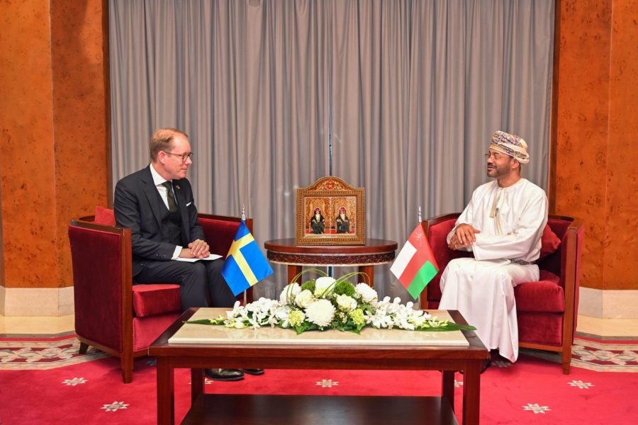 التقى معالي السيد بدر بن حمد البوسعيدي وزير الخارجية اليوم بمعالي توبياس بيلستروم وزير الشؤون الخارجية لمملكة السويد الصديقة، وذلك في إطار اجتماع الدورة الـ (27) للمجلس الوزاري المشترك بين مجلس التعاون الخليجي والاتحاد الأوروبي في مسقط.