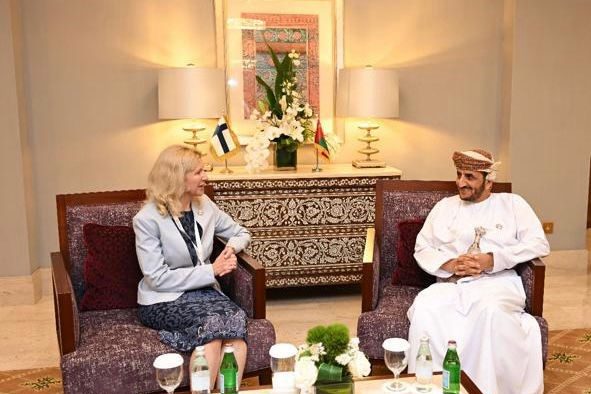 التقى سعادة الشيخ خليفة بن علي الحارثي وكيل وزارة الخارجية للشؤون السياسية اليوم سعادة أوتي هولوبينين وكيلة وزارة الخارجية والسياسة الأمنية بجمهورية فلندا، وذلك على هامش اجتماع الدورة الـ (27) للمجلس الوزاري المشترك بين مجلس التعاون والاتحاد الأوروبي في مسقط.