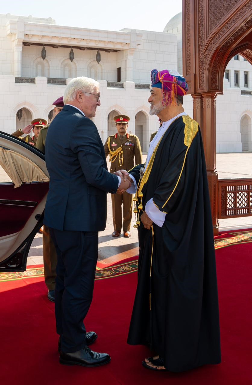 استقبل حضرةُ صاحبِ الجلالةِ السُّلطان هيثم بن طارق المعظم ـ حفظه الله ورعاه ـ فخامة الرئيس الدكتور/ فرانك فالتر شتاينماير رئيـس جمهورية ألمانيا الاتحادية الذي بدأ زيارة رسميّة لسلطنة عُمان.