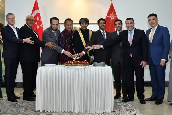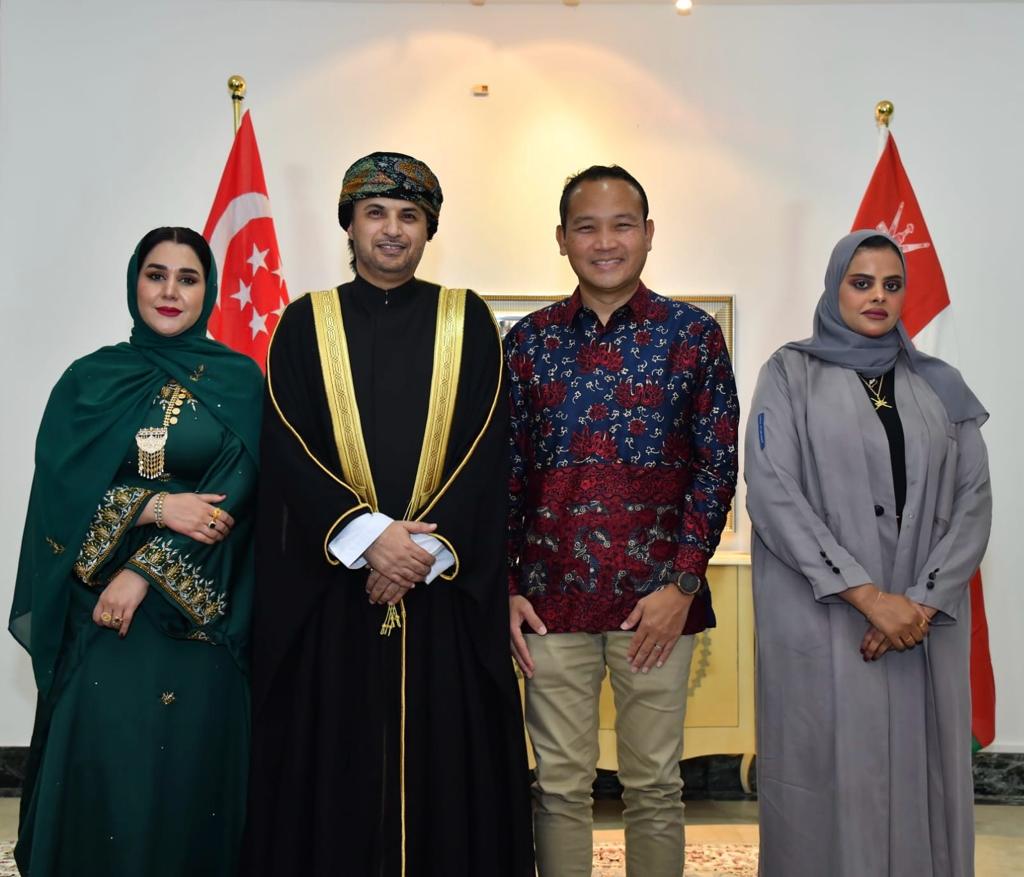 Anwar bin Ahmed Mohammed Muqaibal, Chargé d’Affaires of the Sultanate of Oman’s mission to the Republic of Singapore, and members of the mission held a reception on the occasion of the fifty-third National Day.