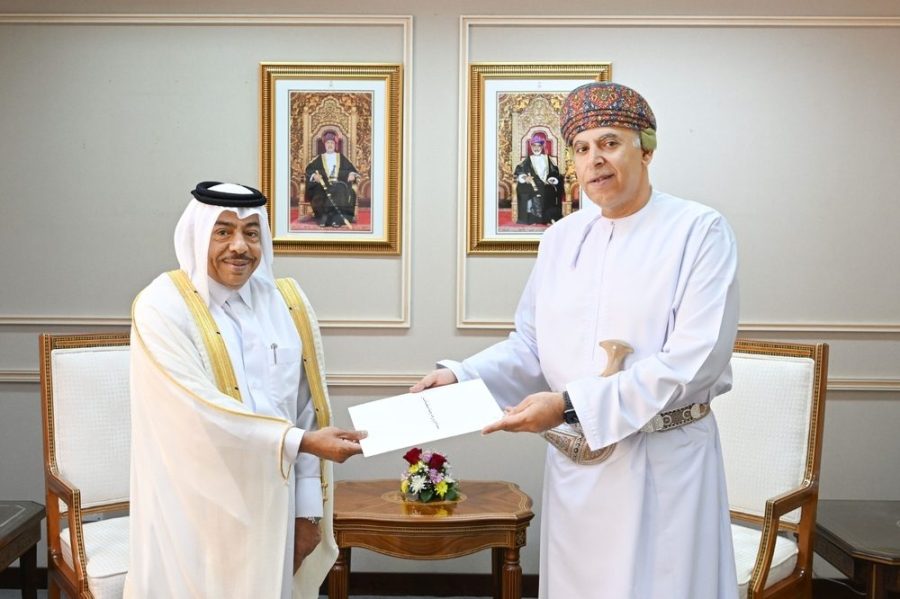 Khalid Almuslahi, Foreign Ministry Undersecretary for Administrative and Financial Affairs, received a copy of the credentials of Sheikh Mubarak bin Fahad bin Jassim bin Mohammed Al Thani, Ambassador-designate of the State of Qatar to the Sultanate of Oman.