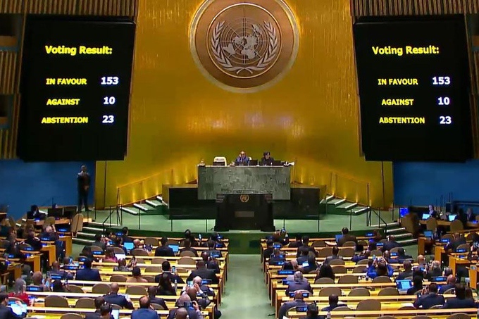 The resolution was supported by 153 countries, with 10 countries opposed, and 23 other countries abstaining.