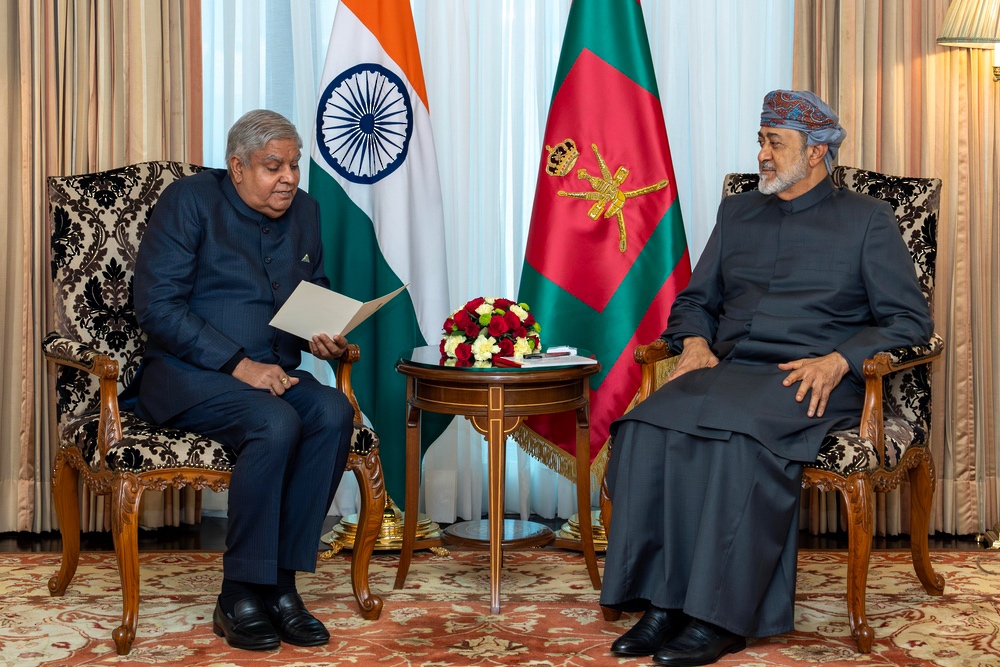 His Majesty Sultan Haitham bin Tarik received in New Delhi this evening Shri Jagdeep Dhankhar, Vice President of the Republic of India, as part of His Majesty’s state visit to India.
