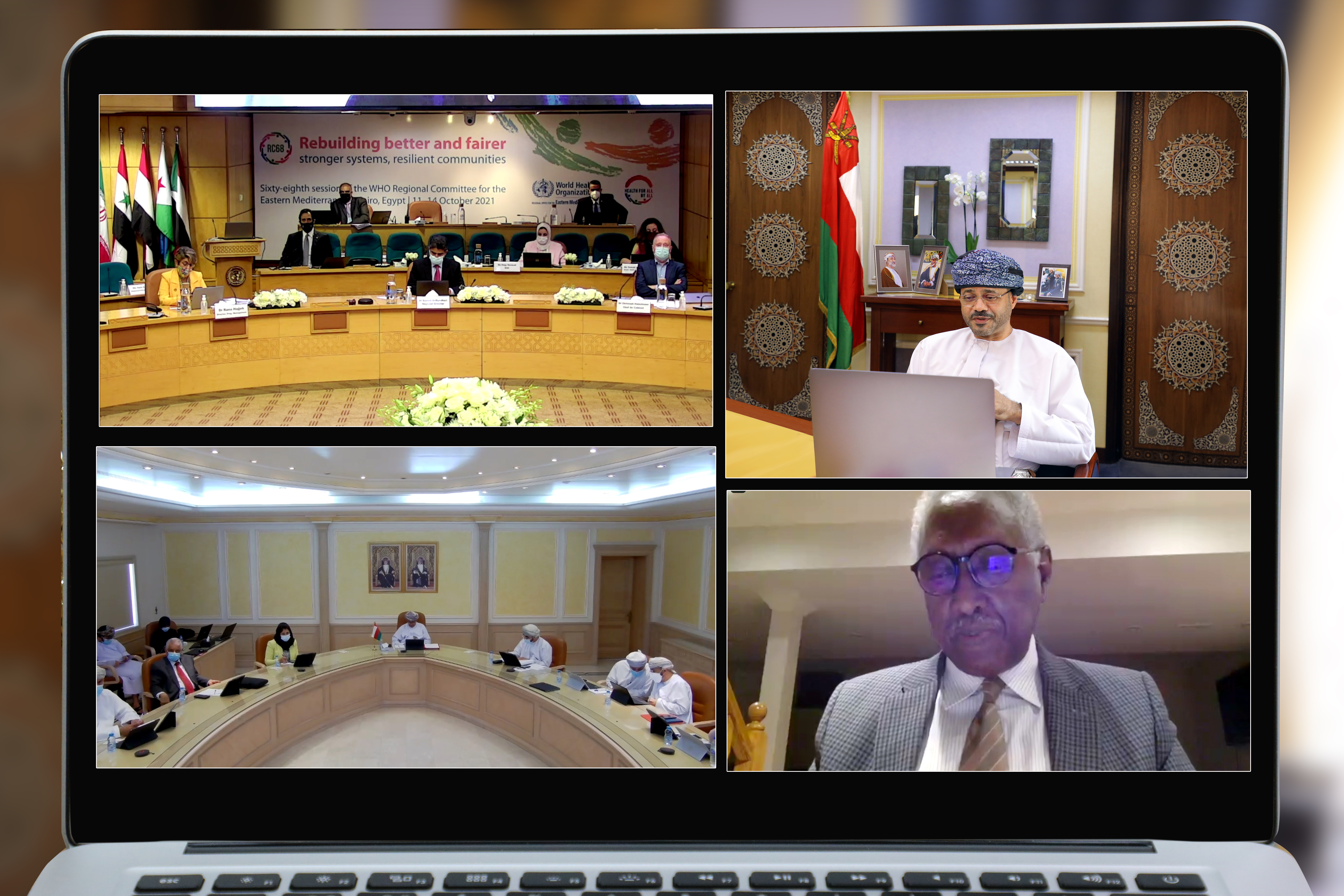 Foreign Minister Sayyid Badr Albusaidi attended a panel discussion on “Health for Peace” during a meeting of the World Health Organisation (WHO) Regional Committee for the Eastern Mediterranean at its 68th session. He took part at the invitation of His Excellency Dr Ahmed bin Mohammed AlSaidi, Minister of Health.