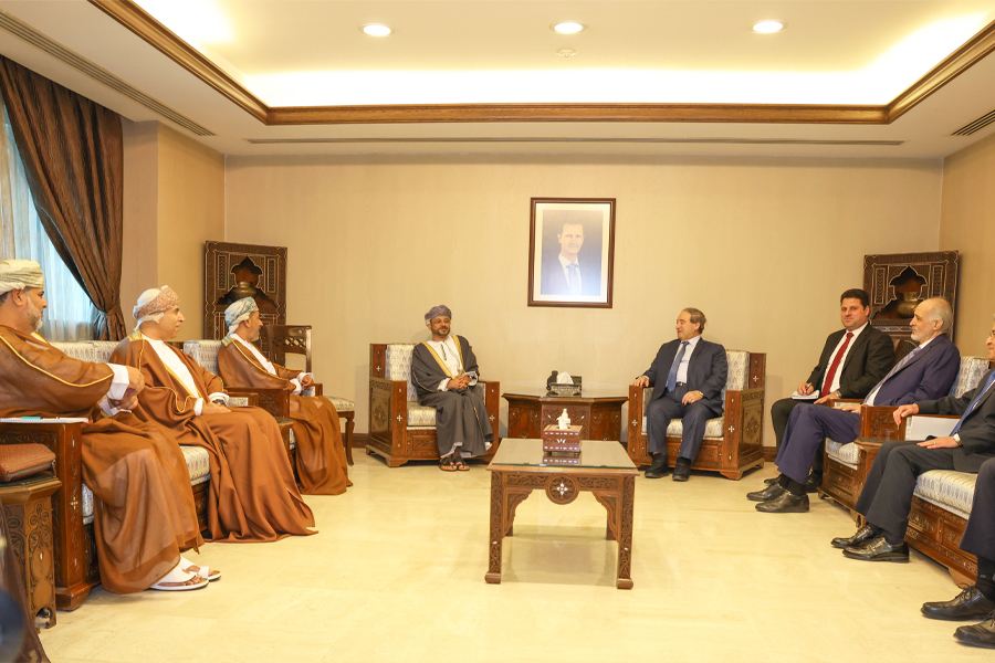 Oman’s Foreign Minister, Sayyid Badr Hamad Albusaidi, held a session of political talks with Dr Faisal Mekdad, Minister of Foreign Affairs of the Syrian Arab Republic during an official visit to the Syrian capital, Damascus.