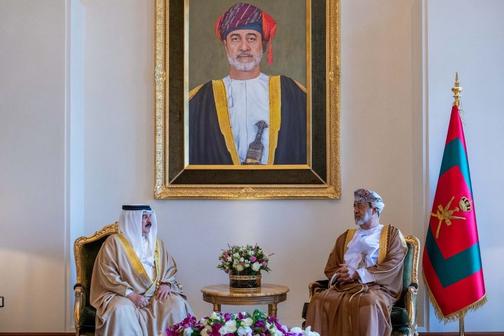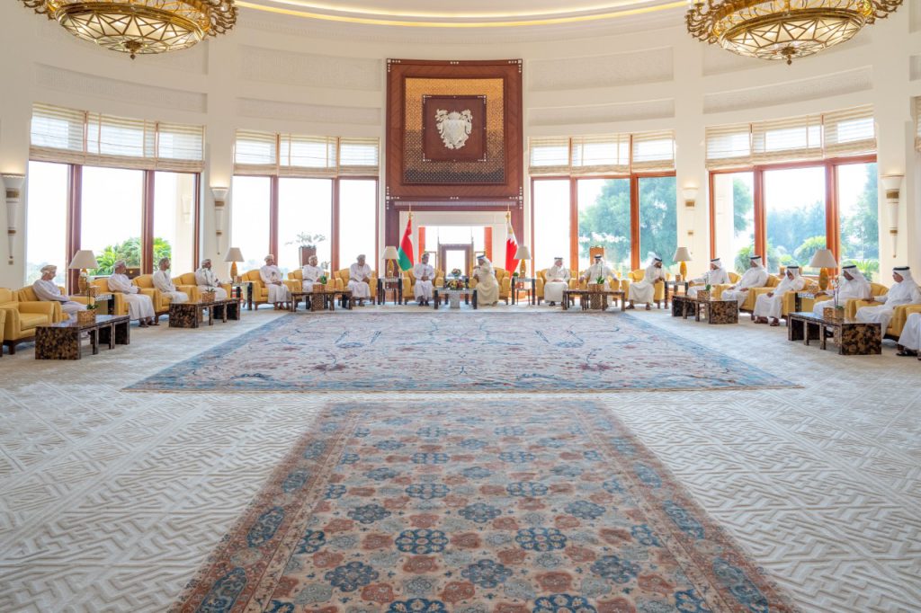 His Majesty Sultan Haitham bin Tarik met King Hamad bin Issa Al Khalifa of the Kingdom of Bahrain at his residence in Al Sakhir Palace today.