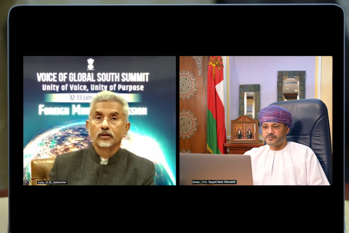 Sayyid Badr Albusaidi, Foreign Minister of Oman, took part via videoconference in the Voice of the South summit meeting, which was hosted by the Republic of India this evening.