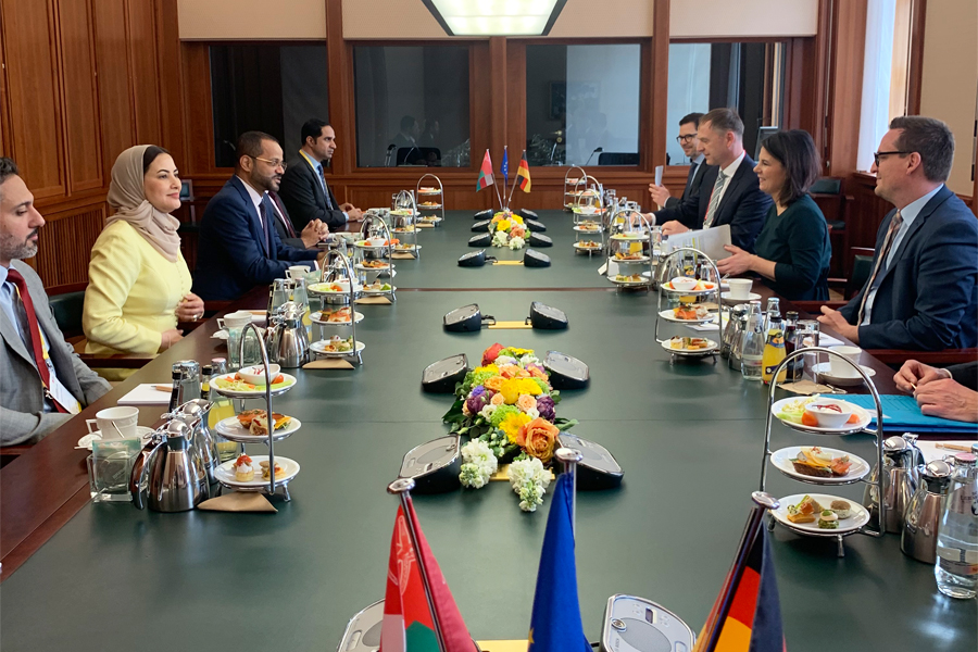 Oman’s Foreign Minister Sayyid Badr Albusaidi met with Annalena Baerbock, Foreign Minister of the Federal Republic of Germany, during his visit to Germany to participate in the Berlin Energy Transition Dialogue.