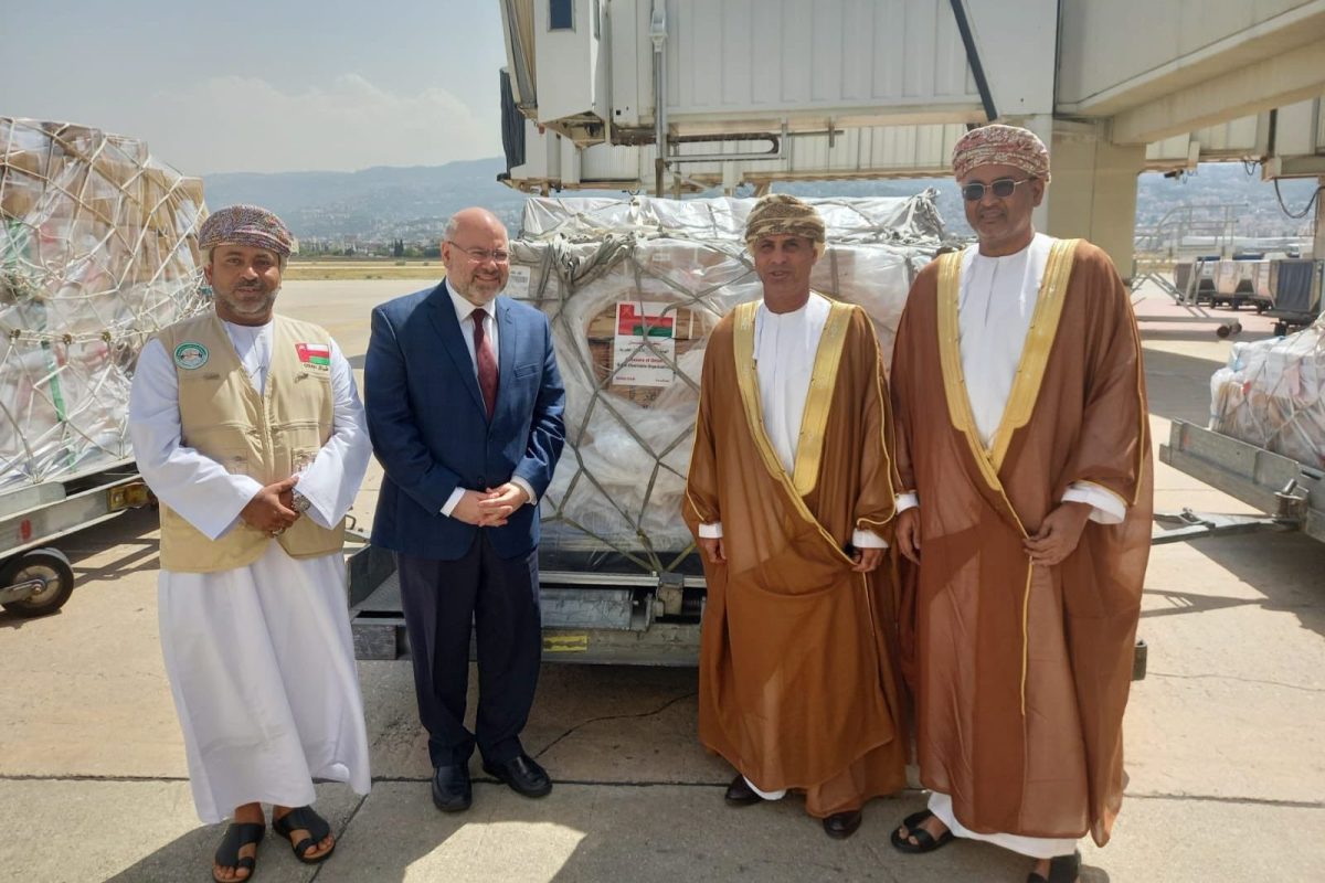 A shipment of 18 tonnes of Omani medical aid arrived in Beirut this morning, where it was received by Dr Firass Abiad, Minister of Public Health in Lebanon; Dr Ahmed Mohammed Alsaidi, Ambassador of the Sultanate of Oman to the Republic of Lebanon, Counselor Salem bin Al-Abrak Bait Shajanah and Nasr bin Khalifa Al-Kathiri, representative of the Oman Charitable Organisation.