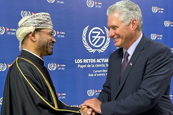 Oman’s Foreign Minister, Sayyid Badr Albusaidi met with Dr Miguel Diaz Canel Bermudez, President of the Republic of Cuba on the sidelines of the G77-China Summit which Cuba is hosting.