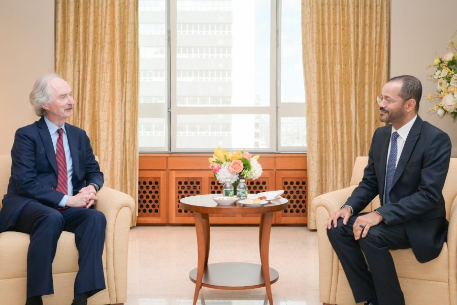 Oman’s Foreign Minister Sayyid Badr Albusaidi, received this evening (September 19th) Geir Pedersen, the UN Special Envoy for Syria, at the headquarters of the Permanent Mission of the Sultanate of Oman to the United Nations in New York.