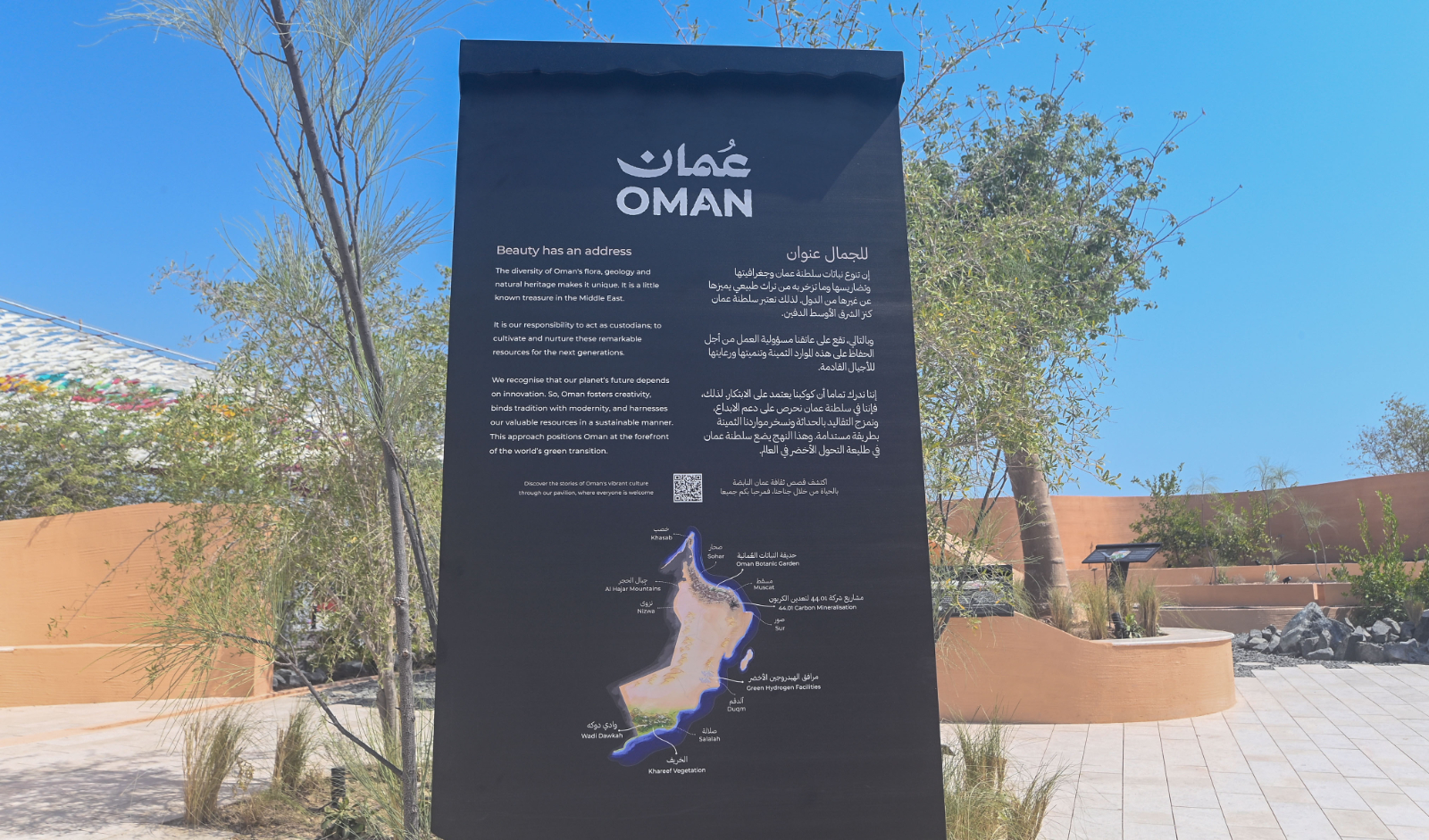The Oman Garden also allows visitors to learn about the engineering and cultural heritage of the centuries-old Omani aflaj irrigation system and how it reflects the values of cooperation, tolerance and dialogue among local communities.